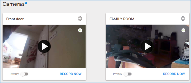 - The Cameras page opens, showing your installed cameras at the top of the page and the most recent camera events listed below.