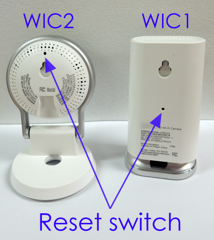 On these indoor cameras, you’ll find the Reset switch on the back of the device.