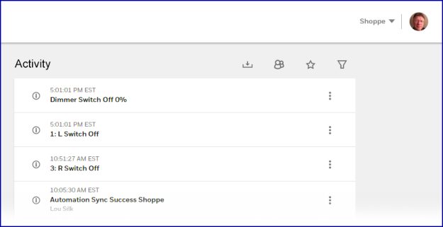 Below: All system activity (events) listed on the Activity page of the website