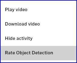 Clicking Rate Object Detection opens a dialog box that asks you to confirm the camera's analysis of what it detected (a person, a package, an animal, etc.).