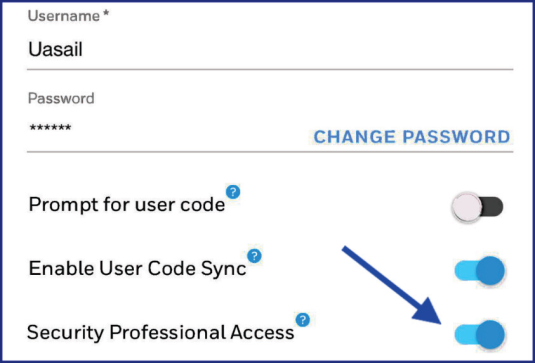 • Locate the Security Professional Access switch and set it to Enabled , as above.