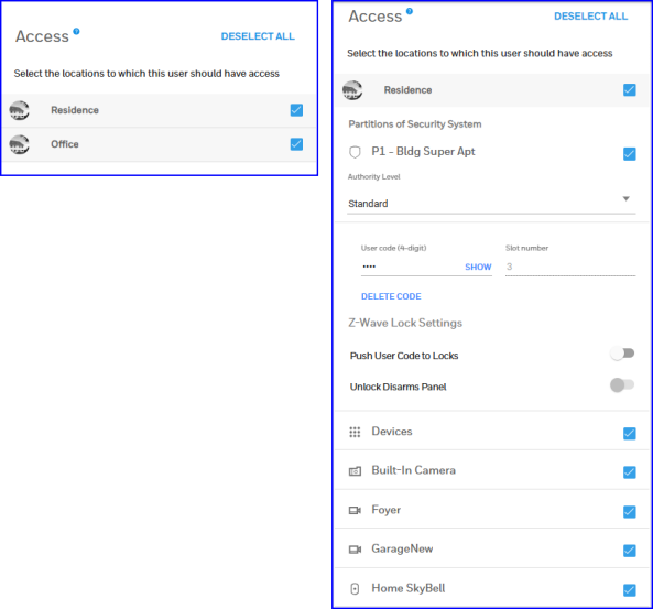 • With the switch set to Off, the mobile app or web browser automatically sends the person's user code for any operation that requires one, with no need to enter it manually.
