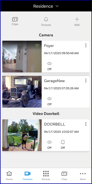 button. The cameras and doorbells at the selected Location are displayed. -